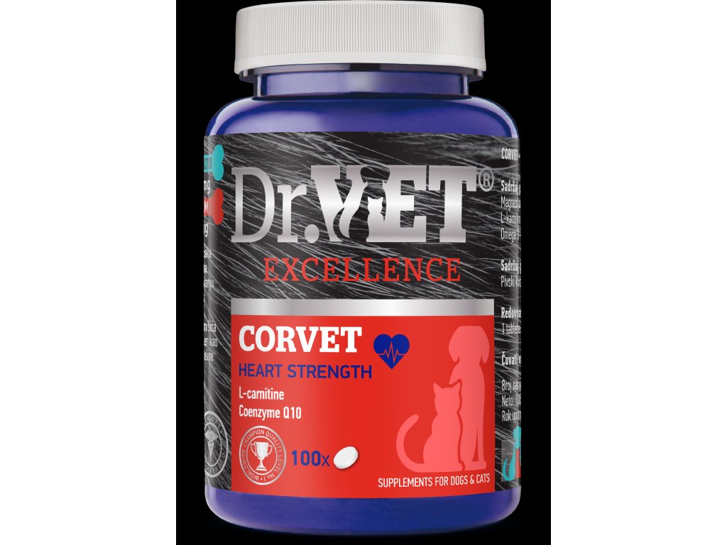 CORVET je určen pro psy a kočky s poruchami kardiovaskulárního systému. Přispívá k normální funkci srdečního svalu a udržování energetického metabolismu. Corvet jako přípravek kombinující složky podílející se na procesech tvorby energie a antioxidantů představuje vynikající podporu pro jedince s kardiovaskulárními chorobami.
