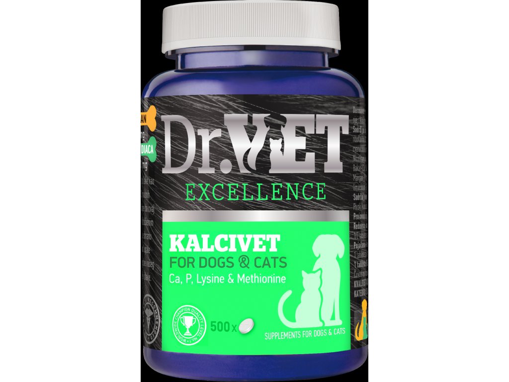 Kalcivet je doplňkové krmivo určené k výživě štěňat a koťat, březích a kojících fen a starších psů a koček. Vápník, fosfor a vitamin D jsou důležité pro správný růst a vývoj kosterního systému zvířat. Optimální poměr 2: 1 vápníku a fosforu byl v praxi prokázán jako vhodný pro většinu plemen psů a koček. Osobní zkušenosti s chovem mladých psů a koček, stejně tak jako profesionální doporučení odborníků, byly základními atributy pro vývoj tohoto produktu. Při pravidelném krmení naši domácí mazlíčci často nedostávají dostatečné množství výše uvedeného, a proto je velmi obtížné očekávat optimální vývoj kostry. Použití produktu Kalcivet v prvních 12 měsících růstu a vývoje štěňat a koťat zabraňuje nesprávnému vývinu a deformaci kostí. Nadměrné dávky vápníku v denních krmných dávkách psů a koček jsou problémem, protože to snižuje vstřebávání mnoha velmi důležitých minerálů (Mg, Zn atd.) a následně zpomaluje některé metabolické procesy v těle.